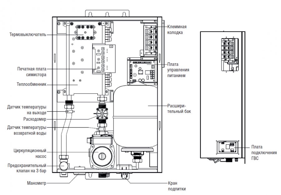 - Есть возможность подключения бойлера косвенного нагрева для систем ГВС;