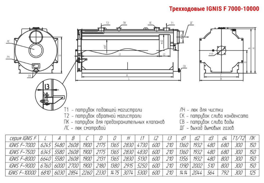 Технические характеристики водогрейного трёхходового котла ARCUS IGNIS F-8000