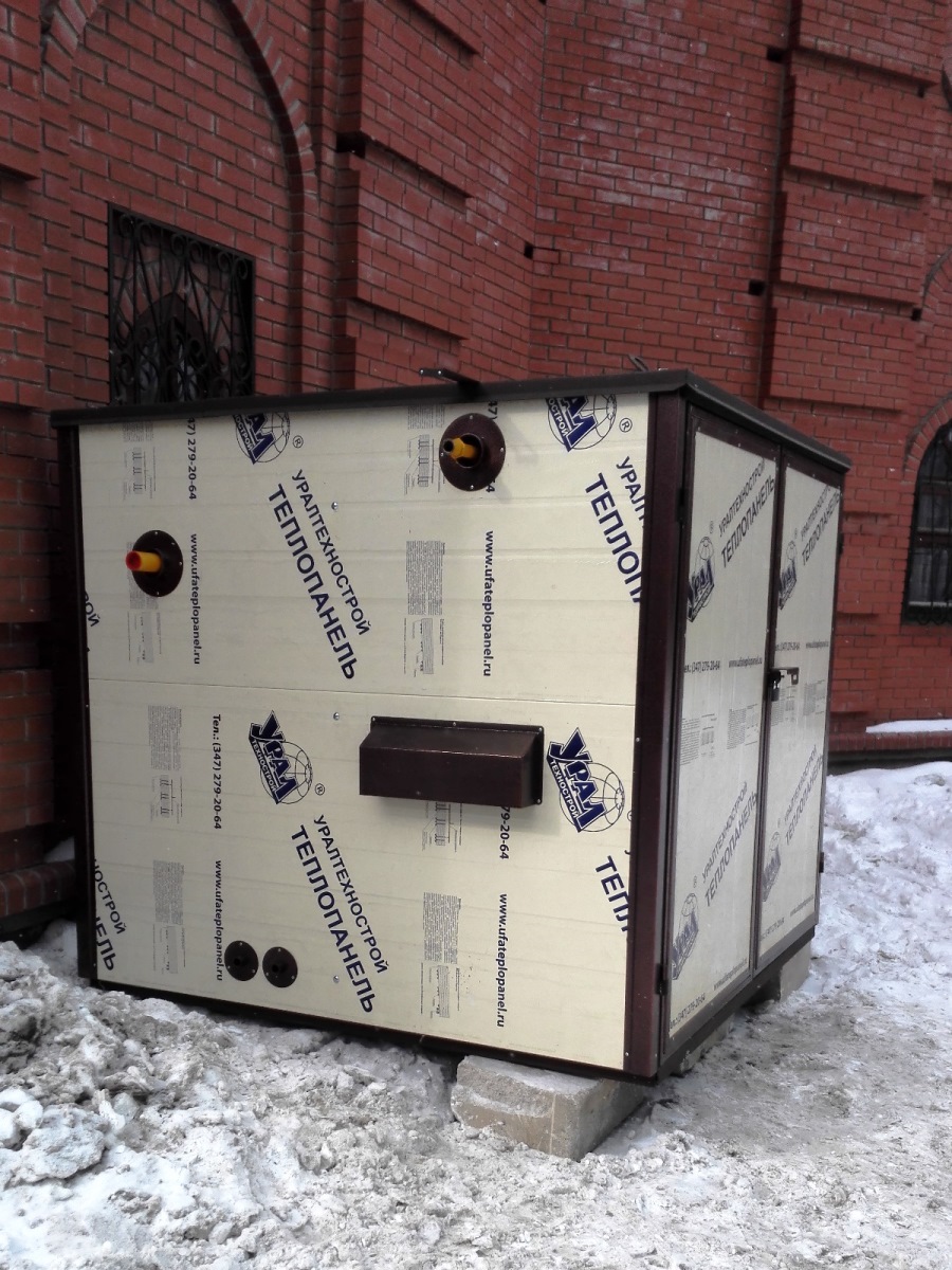 • Не требуется строительство отдельного здания, котлы размещаются снаружи отапливаемого здания, трубопроводы отопления заводят через стену внутрь здания. Котел управляется с пульта, который устанавливается внутри здания.