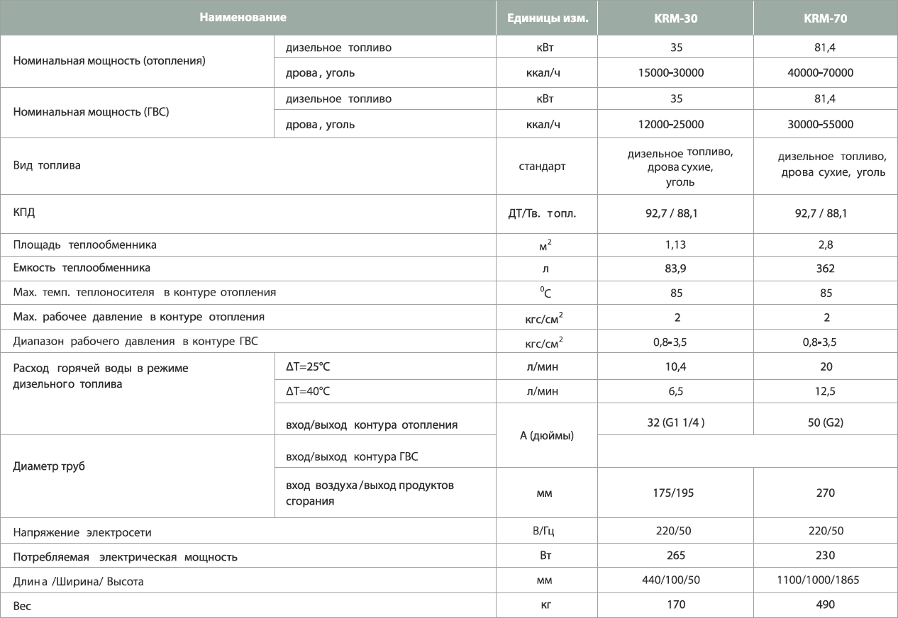 Технические характеристики твердотопливного котла Kiturami KRM 30