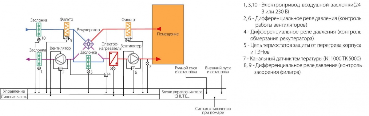 - Подключение электрических воздухонагревателей суммарной мощностью до 30 кВт;