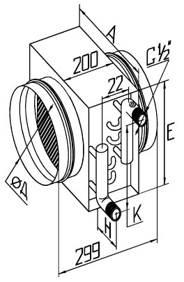 Предназначен для подогрева воздуха приточной системы вентиляции, требует установки узла смешения и системы автоматики вентиляции.